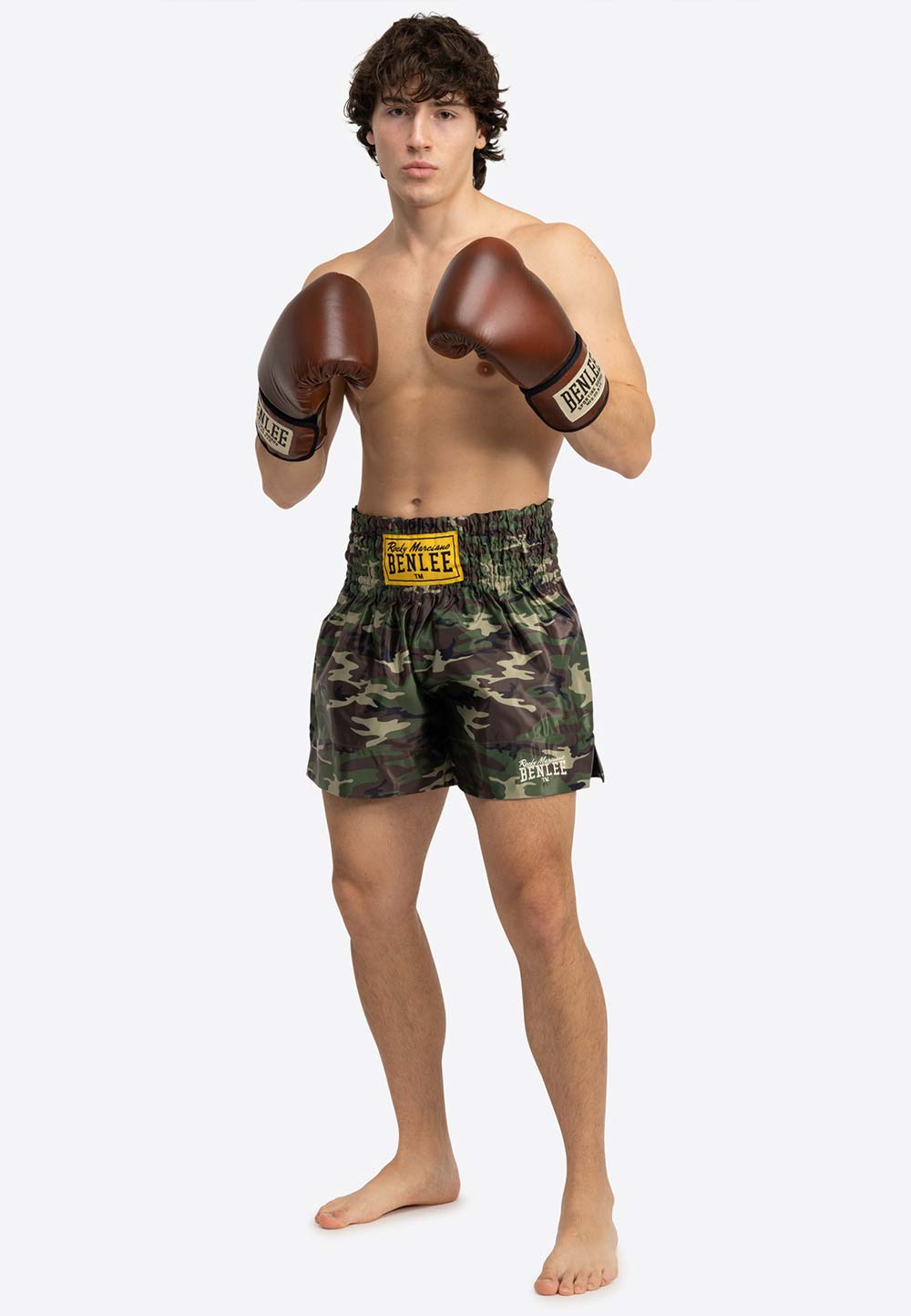 Uni Thai Maskirni muški šorc iz BENLEE-a je savršen izbor za trening i takmičenje u Muay Thai boksu. Super elastična traka u struku garantuje savršenu podršku, dok prorezi sa strane na nogavicama osiguravaju maksimalnu slobodu pokreta. Šiveni logo na traci u struku i vezeni logo na rubu čine ove šorce pravim vizuelnim spektaklom i idealnim saputnikom za borilačke veštine.